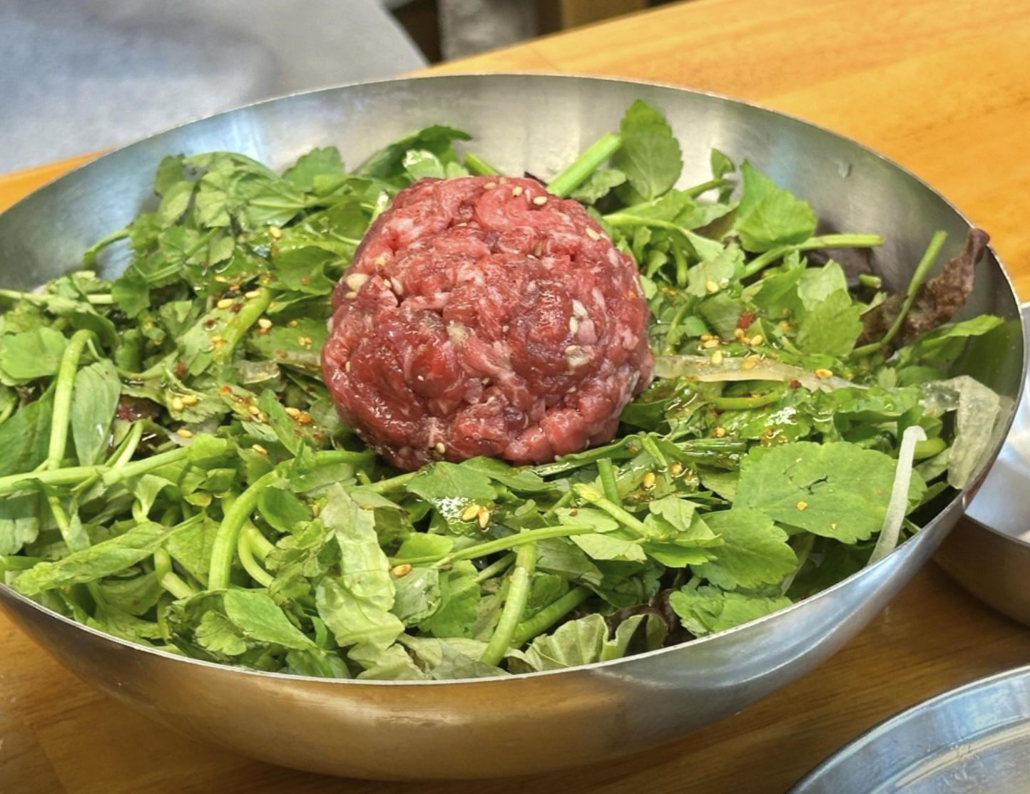 특히 1++ 등급의 최고급 한우를 사용하고, 전통 방식인 '토렴'을 16번이나 반복해 국물 맛이 밥알 사이사이 깊게 배어있어요. 깔끔하고 개운한 맛 덕분에 미나리를 선호하지 않는 분들도 입문하기 딱 좋은 곳이랍니다.