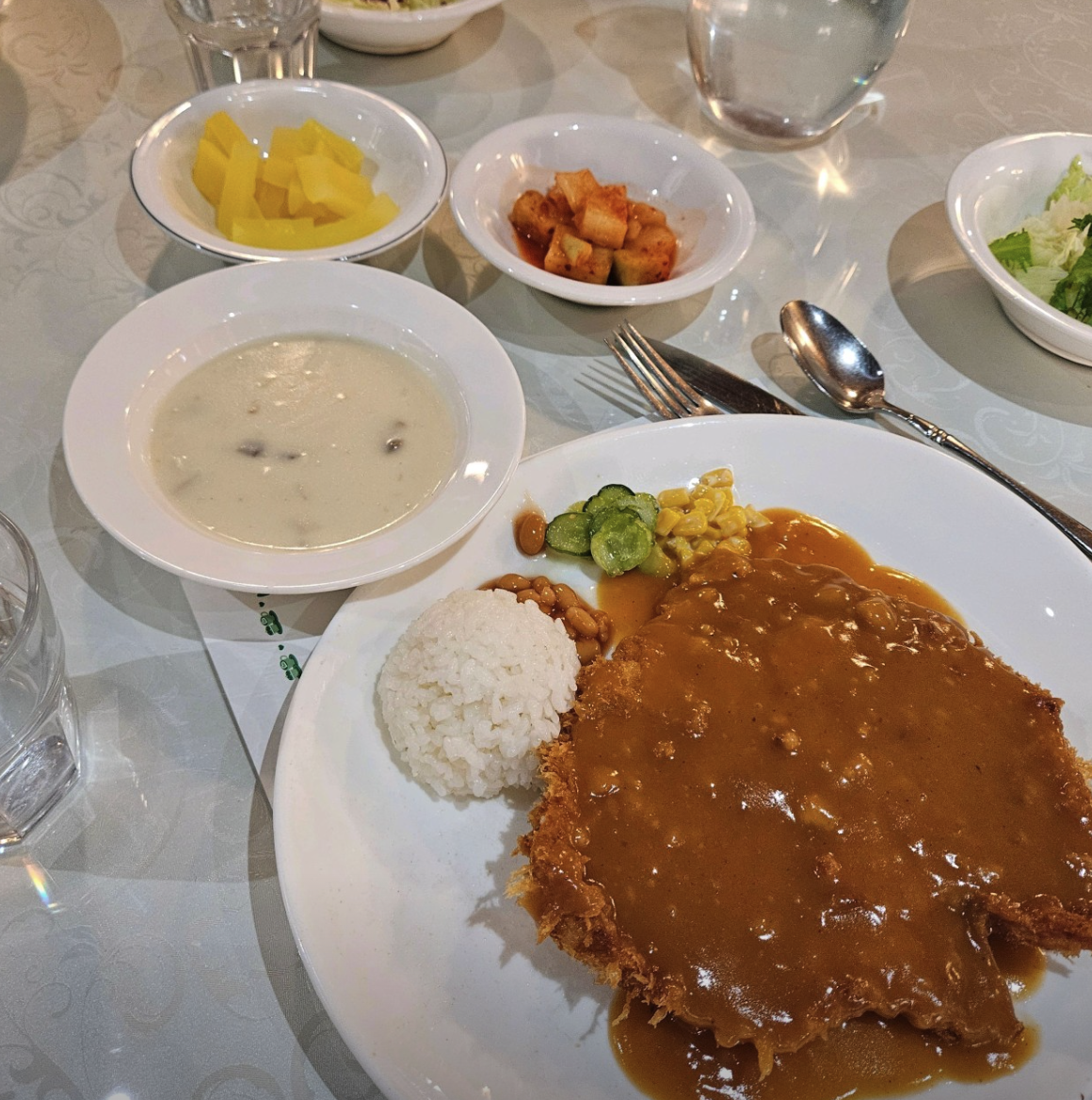 식전 메뉴로 나오는 양송이스프부터 정겨운 깍두기까지 모든 구성이 완벽한데요. 특히 고기 결이 살아있는 돈가스와 부드러운 함박스테이크는 부모님께는 추억을, 아이들에게는 특별한 경험을 선사합니다. 행정안전부에서 인정한 착한가격업소인 만큼 합리적인 가격에 훌륭한 다이닝을 즐길 수 있어 더욱 가치 있는 곳이에요!