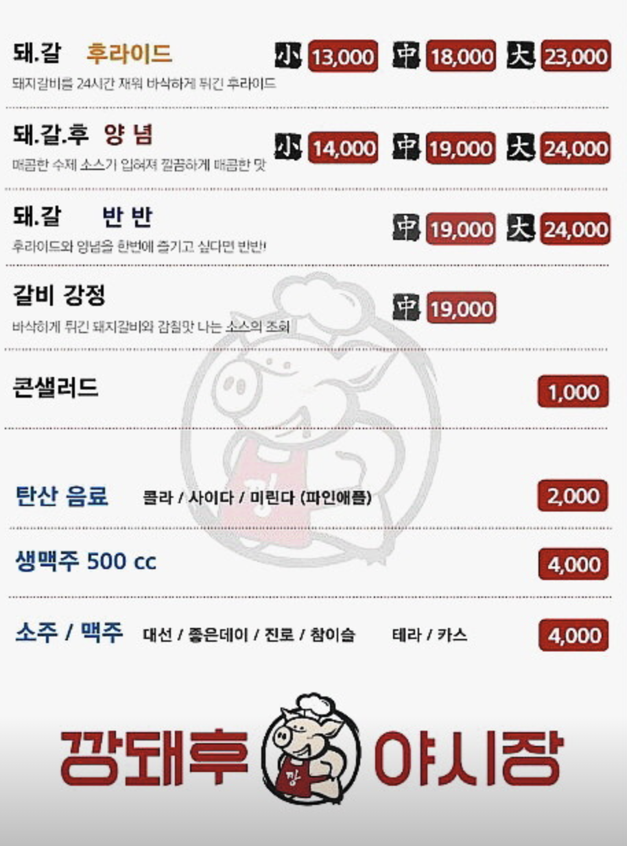 깡돼후 메뉴와 가격은?