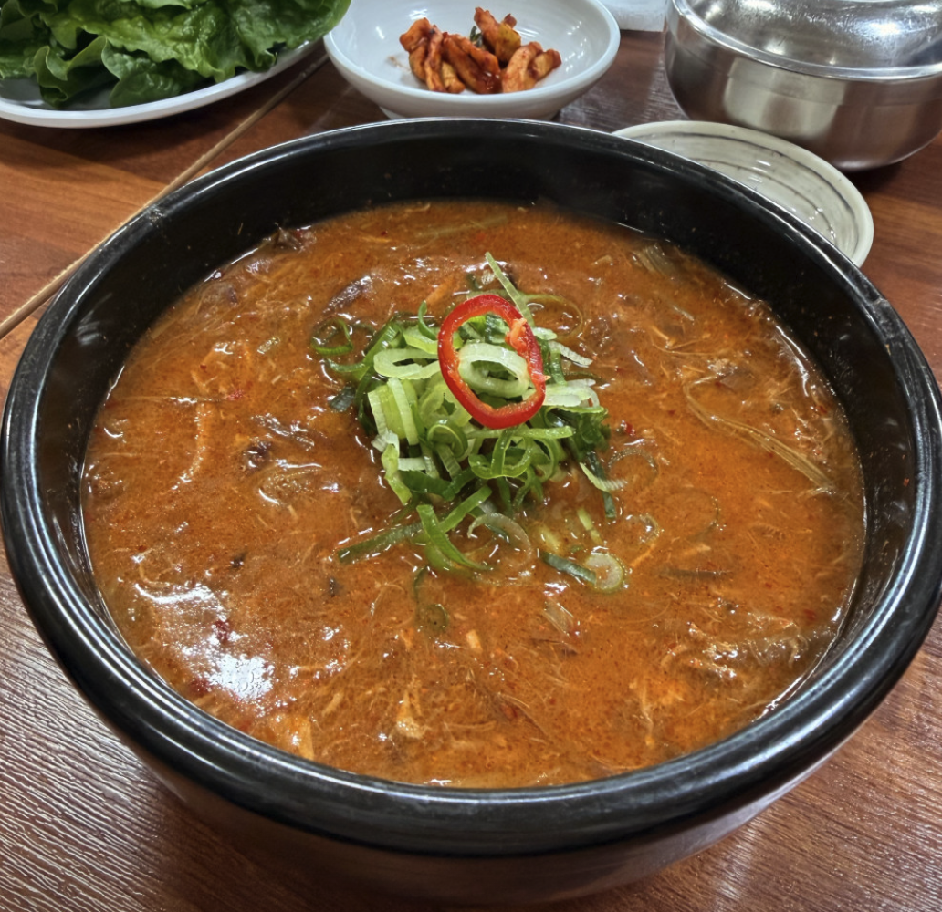 이곳은 단순한 식당을 넘어 제주의 전통을 지키는 곳이에요. 해녀셨던 할머니가 해주시던 방식 그대로, 해장국에 식이섬유가 풍부한 '우무'를 넣어 건강함까지 더했답니다. 32년 경력의 대가가 끓여내는 국물은 깊이가 남달라요.