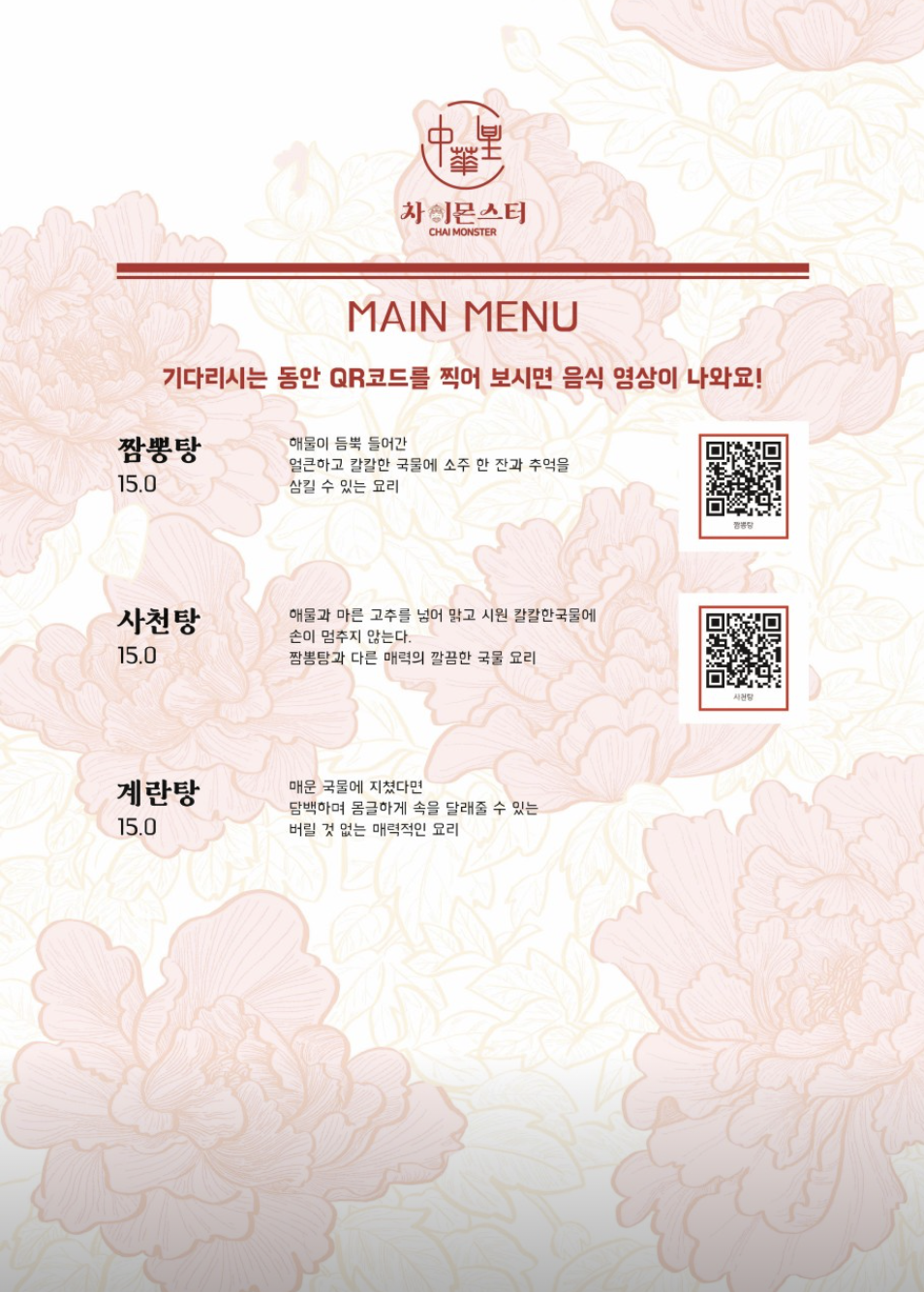 가성비와 맛을 모두 잡은 차이몬스터의 주요 메뉴판 정보를 확인해 보세요!