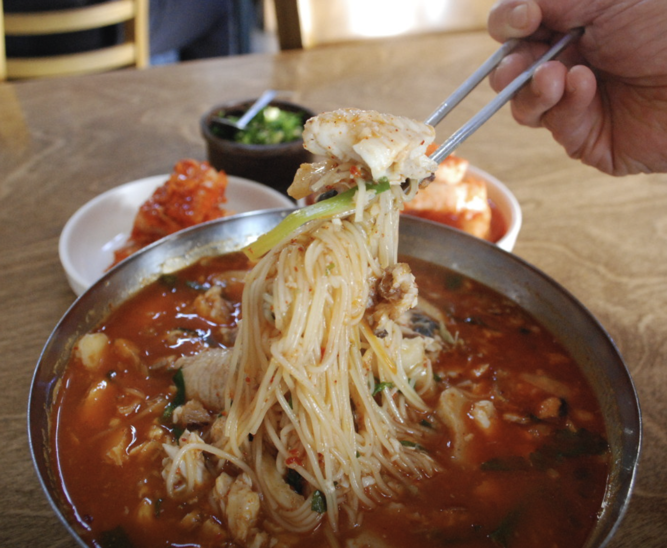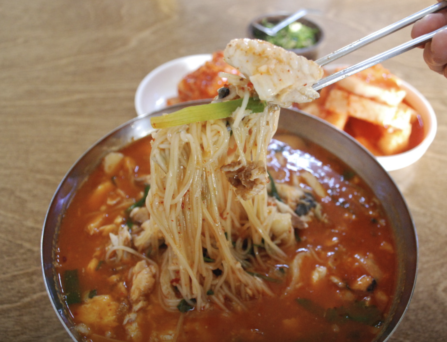 A: 적당히 얼큰하면서 담백한 맛이 일품입니다. 매운 것을 아주 못 드시는 분들이 아니라면 기분 좋게 드실 수 있는 정도예요.