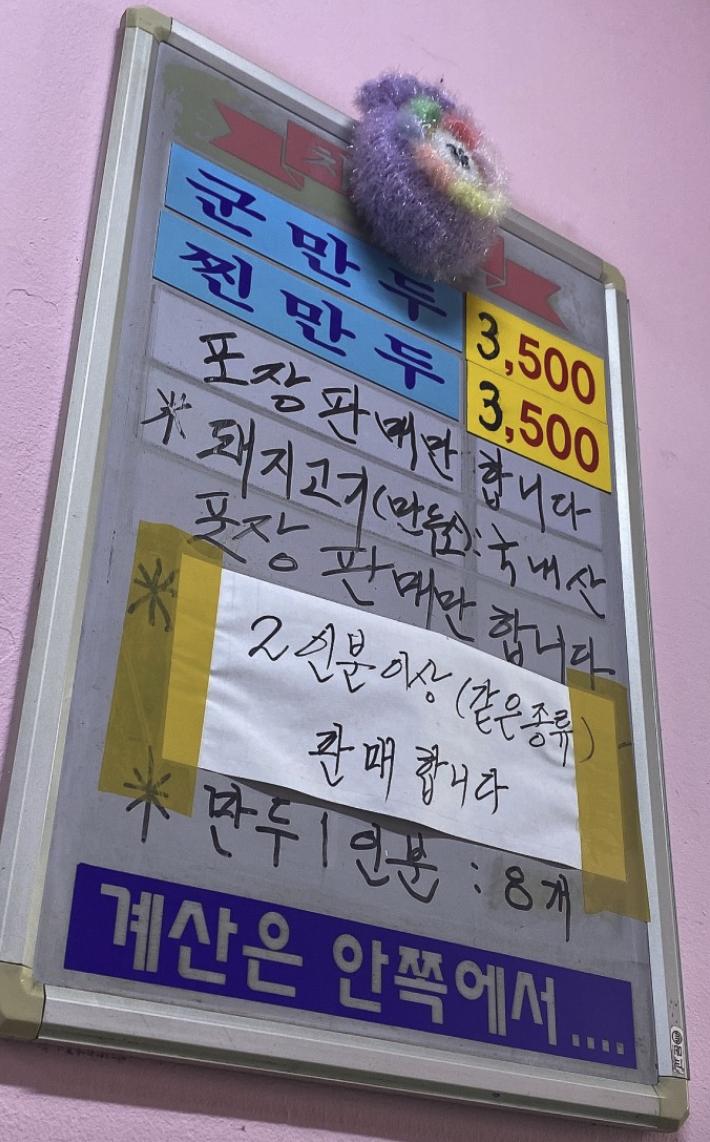- 특이사항: 11시 이후부터 군만두 주문 가능, 재료 소진 시 조기 마감