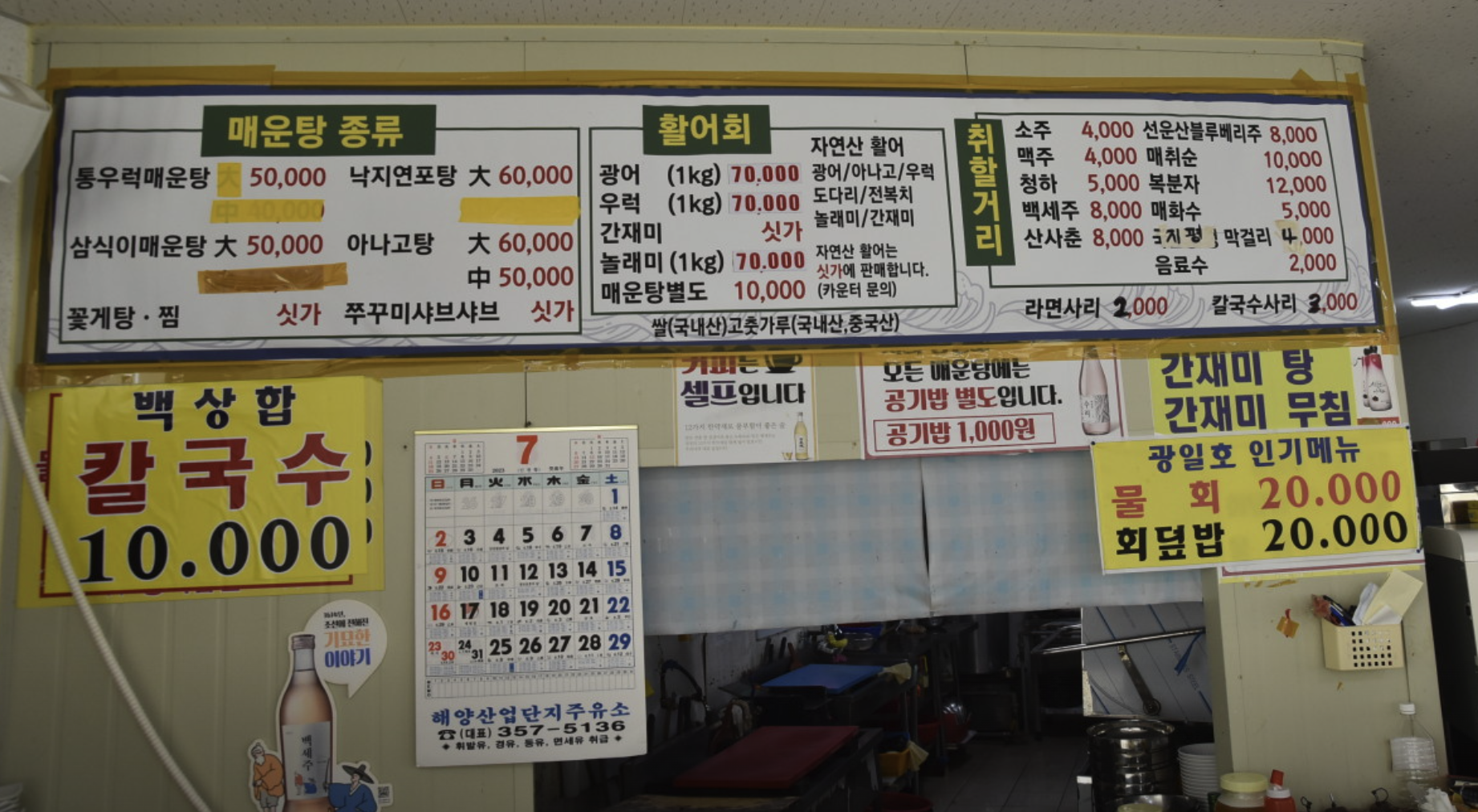 광일호 횟집 메뉴와 가격 안내