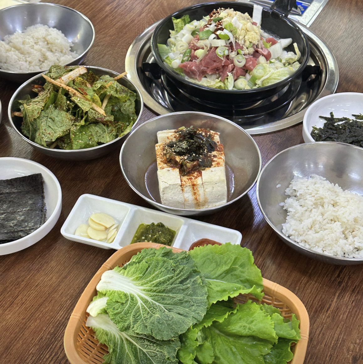 특히 이곳은 셀프 계란후라이를 직접 해서 찌개와 함께 밥에 슥슥 비벼 먹는 재미가 쏠쏠해요. 신선한 상추와 김에 짜글이 고기를 올려 쌈을 싸 먹으면 그 조화가 정말 환상적이랍니다. 밥도 부족하면 더 주시는 넉넉한 인심 덕분에 기분 좋게 배를 채울 수 있는 곳이에요!