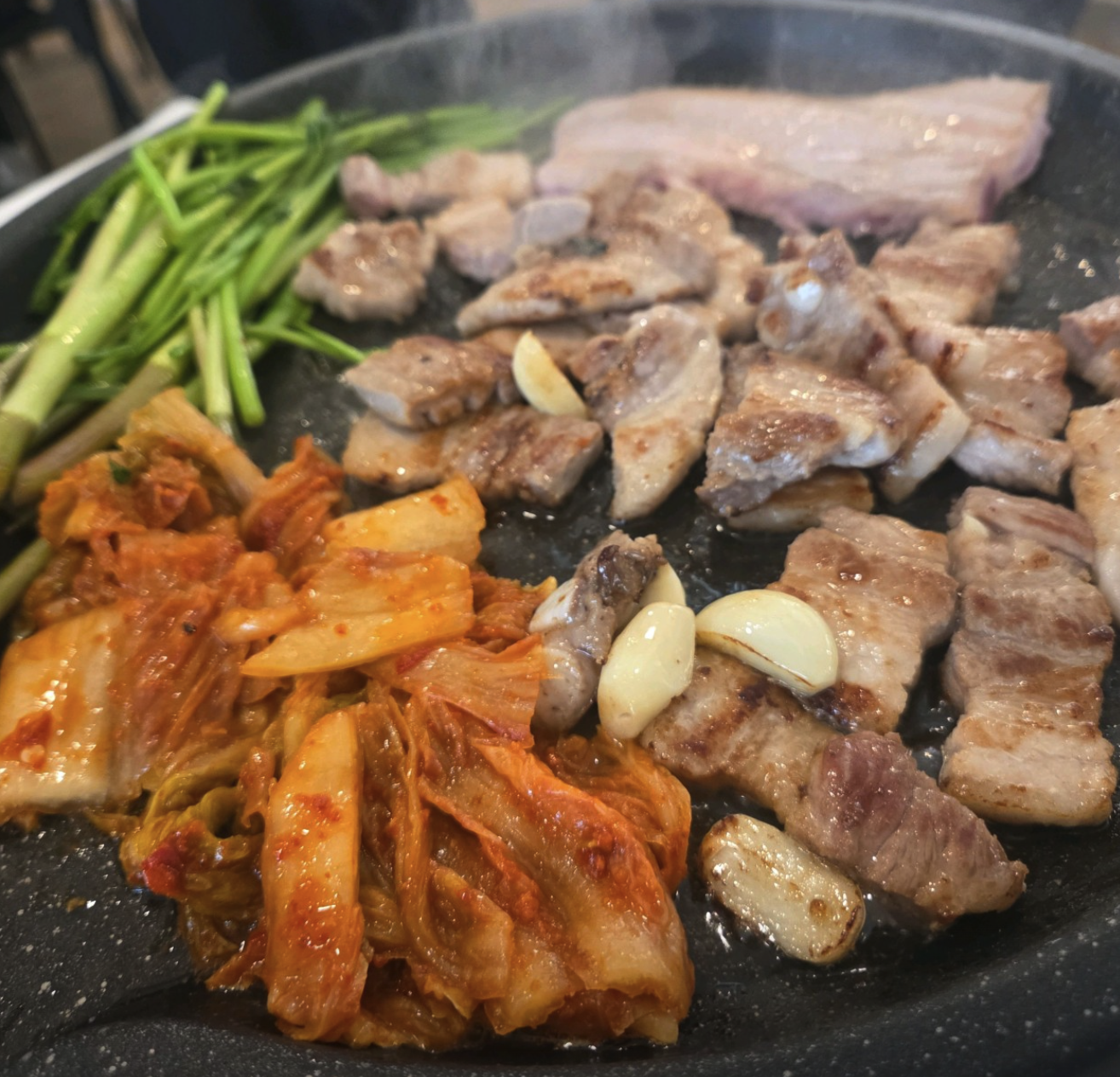 신선한 생삼겹살부터 고소한 오리구이까지, 미나리와 찰떡궁합인 메뉴 구성입니다.